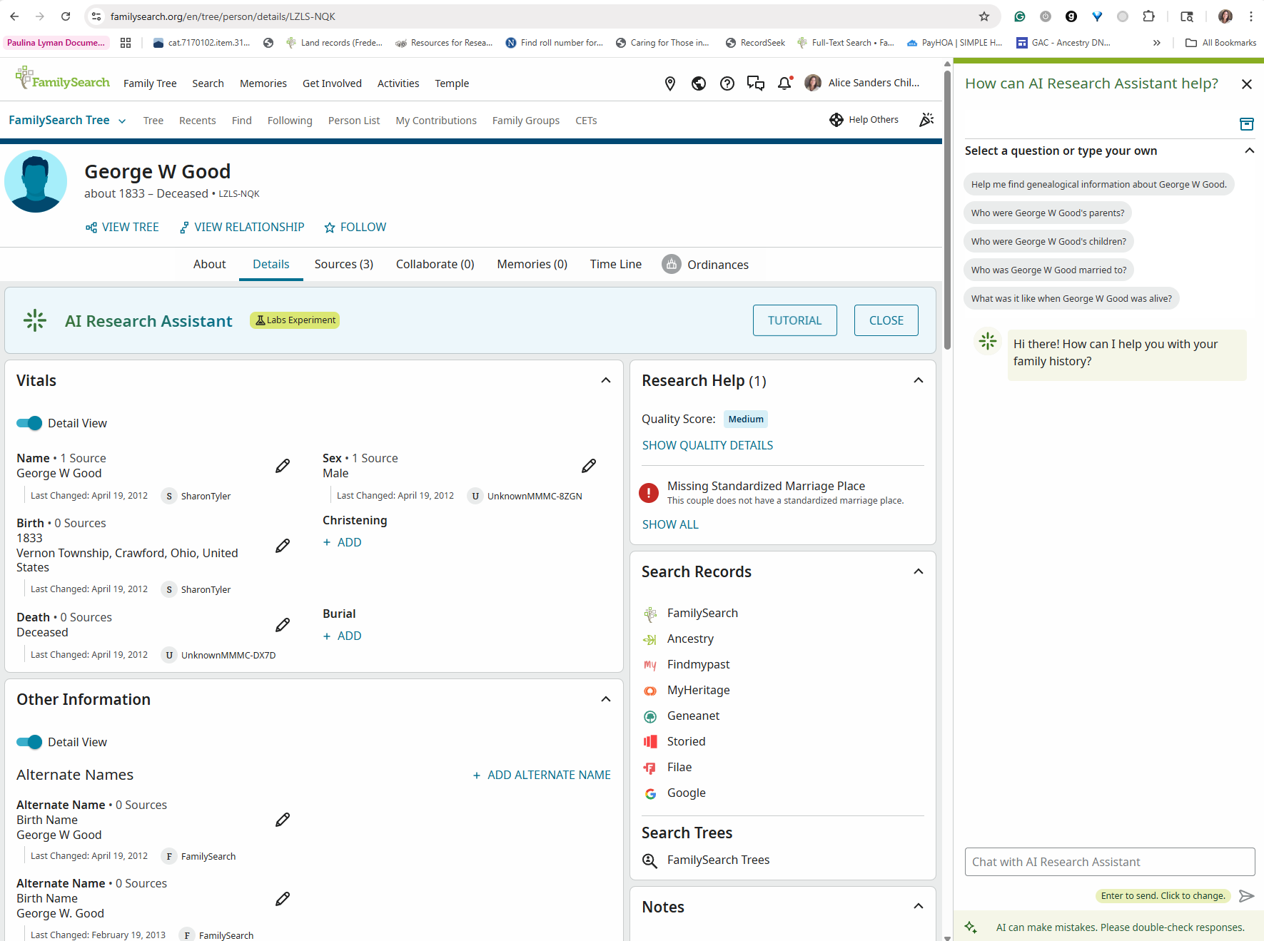 Just as you have used AI in many different ways when using technology in your everyday life, you’ve likely already encountered AI tools in your genealogy research without even realizing it. FamilySearch has integrated AI features that can search your tree, find sources, and answer genealogical questions. Many genealogists are also using tools like ChatGPT, Claude, Gemini, and Perplexity to enhance their research.